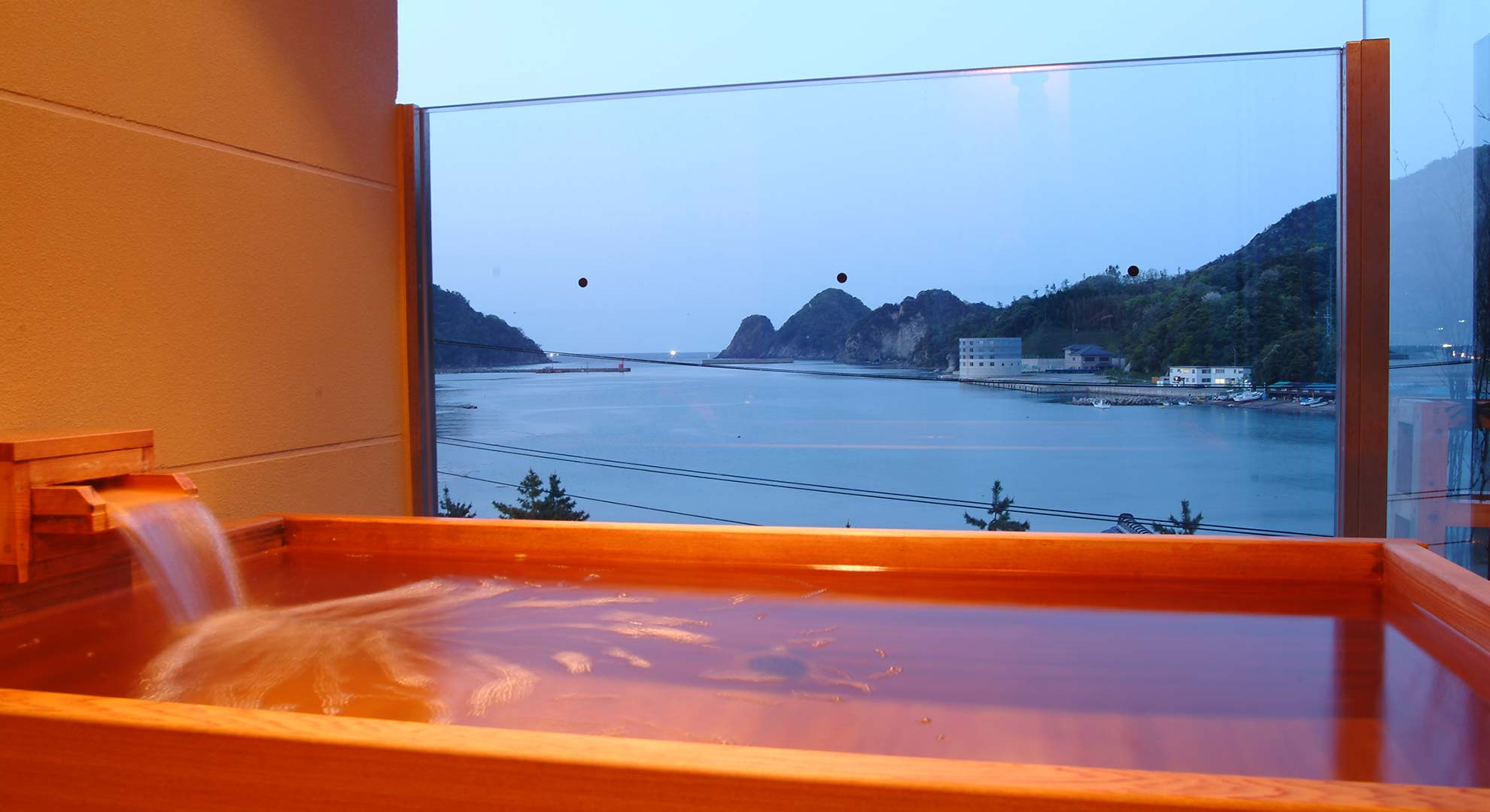 但馬の大自然に囲まれた当館。周りには山陰の緑深い山々、眼下には柴山の美しい海。展望風呂/展望露天風呂を備えた癒しの宿でごゆるりとお過ごしください。